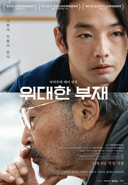 오랜 세월 아버지와 연락을 끊고 지내던 도쿄의 연극배우 타카시(모리야마 미라이)가 어느 날, 아버지가 벌인 기묘한 인질극 소식을 듣게 된 후 흩어진 단서들과 기억을 찾아 떠나는 여정을 담은 영화 '위대한 부재'의 감독 치카우라 케이가 하마구치 류스케, 미야케 쇼와 함께 일본 영화계를 이끌어갈 차세대 주자로 주목받고 있다.