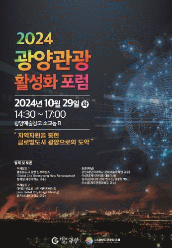 광양시는 오는 29일 오후 2시, 광양예술창고 소교동B에서 ‘광양관광 활성화 포럼’이 개최된다고 밝혔다.