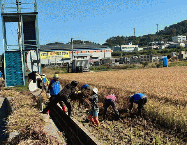 이날 주민자치위원들은 1년간 정성 들여 키운 벼를 직접 수확하며 뜻깊은 시간을 보냈다.