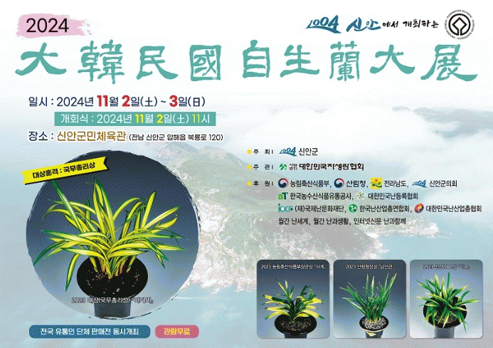 이번 대전은 멸종위기에 처한 우리나라의 희귀 난과 식물을 보호하고, 더불어 난 문화의 대중화와 자생란 산업 활성화를 위해 2,000여 점의 다양한 희귀 자생란들을 선보이며 1004섬 신안에서 개최됩니다.