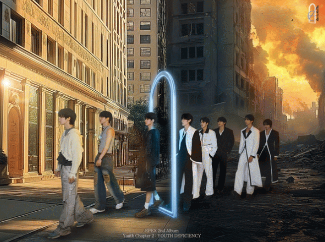 이펙스(위시, 금동현, 뮤, 아민, 백승, 에이든, 예왕, 제프)는 지난 24일과 25일 0시 공식 SNS를 통해 두 번째 정규앨범 ‘소화(韶華) 2장 : 청춘 결핍’의 첫 번째 콘셉트 포토 단체 및 개인컷을 공개했다.