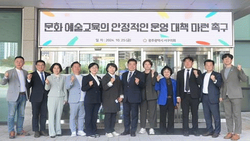 광주 서구의원들은 건의안을 통해 정부와 문화체육관광부 등에 ▲지속 가능한 예산 지원 방안 마련 ▲지방교육재정 이관 계획 재검토 ▲ 2025년도 학교 문화예술교육 예산 즉각 복원 ▲학교 문화예술교육의 안정적인 운영 대책 마련을 촉구했다.
