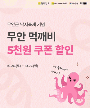 이혜향 지역경제과장은 “무안군만의 특색 있는 축제와 함께 먹깨비 할인이벤트로 지역경제에 활력을 불어넣고, 소비자도 만족할 수 있도록 최선을 다하겠다”고 말했다.