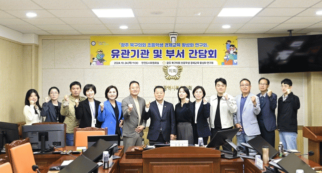 이번 간담회는 연구회 소속 의원들을 비롯한 광주은행 브랜드전략부 ESG사회공헌팀과 북구청 소상공인지원과 등이 참석하여 상호 협력 방안과 초등학생 경제교육 활성화 방안에 대한 다양한 논의가 이루어졌다.