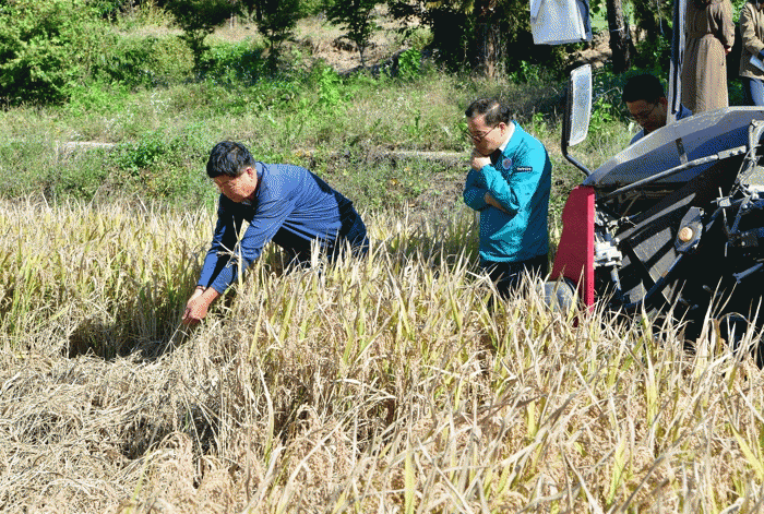 군은 벼멸구 확산 피해와 쌀값 하락 등의 요인으로 어려움을 겪고 있는 벼농가들을 위로하고 수확 상황을 점검했다.
