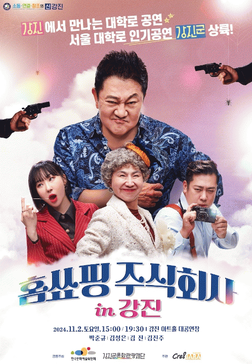 ‘홈쑈핑 주식회사 in 강진’은 서울 대학로에서 인기리에 공연하고 있는 ‘홈쇼핑 주식회사 국제흥신소’의 강진 버전으로 국밥 팔아 대박 치고 건물주가 된 ‘욕쟁이 할매’가 흥신소를 스타트업이라 우기는 탐정소장을 만나면서 벌어지는 얼렁뚱땅 사건 해결 이야기를 그린 코믹 버라이어티쇼 연극이다.