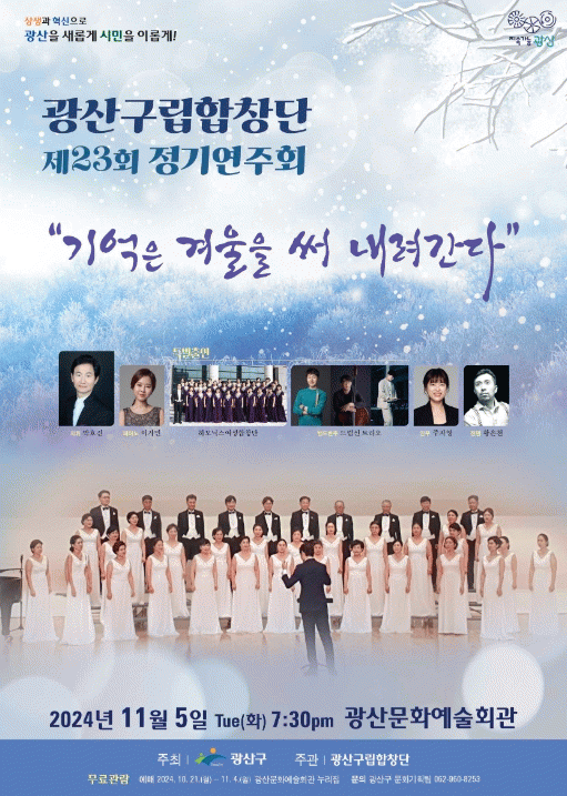 총연출을 맡은 광산구립합창단 박호진 지휘자는 “한 해가 저물어가는 시기 시민에게 희망과 웃음을, 위로와 용기를 주는 공연이 될 것”이라고 말했다.