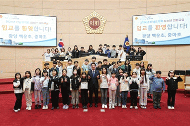 이날 의회교실에는 광양 백운초와 중마초 학생들이 참가하여 학교생활에 필요한 조례 제정 및 찬반토론, 표결처리, 3분 자유발언 등 본회의에서 실시되는 의사진행 과정을 직접 체험했다.