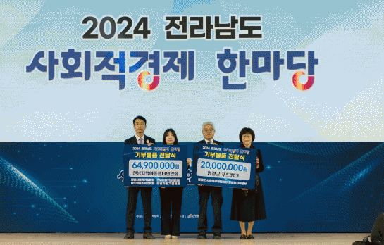 한편, 사회적경제 기부식에서 영광군사회적경제기업협의회에서는 한수원㈜ 한빛원자력본부와 연대하여 2,000만 원 상당의 물품을 영광군 푸드뱅크에 전달했고, 전남사회적기업.마을기업.남도협동조합.자활기업협회 등 4개 단체에서는 6,490만 원 상당의 물품을 전남지역아동센터연합회에 전달하여 사회적경제 가치를 실현하는 뜻깊은 행사의 전통을 이어갔다.