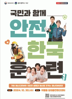 이번 훈련은 서부소방서, 서부경찰서, 국토안전관리원 등 19개 유관기관과 서구 자율방재단, 안전모니터 봉사단 등 민간단체·주민 280여 명이 참여한다. 훈련은 상황 및 역할에 따른 재난 역량 향상을 위해 서구청 재난안전상황실에서 토론 훈련과 김대중컨벤션센터에서 현장 훈련이 동시에 실시된다.