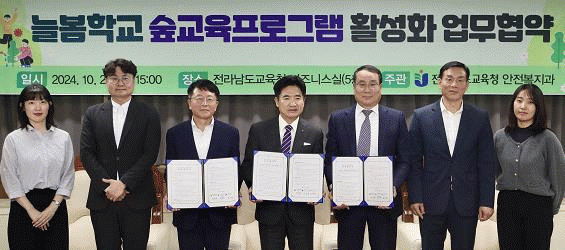 전남교육청은 이번 협약에 따라 내년 늘봄학교 초등 1, 2학년 맞춤형 프로그램으로 체험형 숲교육 프로그램을 보급해 저학년 수준에 맞는 생태교육을 실시하게 된다.