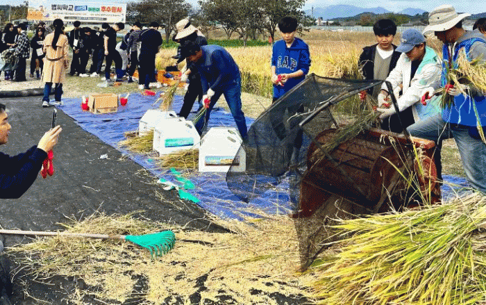 (사)전라남도친환경농업협회와 창평 볍씨마을학교에서 주관한 ‘2024 볍씨마을학교 추수 체험’ 행사가 지난 29일 담양 창평면 삼천리 하삼천마을에서 진행됐다.