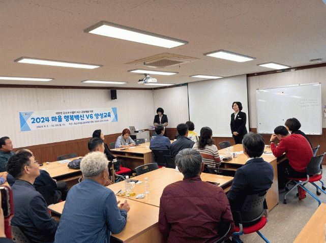 교육에 참여한 김00 교육생은 “마을행복백신V6 양성 교육을 통해 갈수록 소멸돼 가는 마을을 살리기 위한 마을 리더로서, 마을을 위해 봉사하고 헌신하는 마음이 어떻게 전달되어야 하는지 알게 되는 뜻깊은 교육이었다.”라고 말했다.