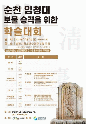 시 관계자는 “이번 학술대회를 통해 순천 임청대의 역사적ㆍ학술적ㆍ예술적 가치가 재조명되어 보물 승격으로 이어지길 기대한다”고 밝혔다.
