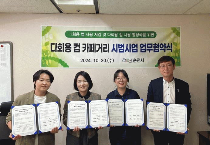 한편 ‘다회용 컵 카페거리 시범사업’ 관련 자세한 사항은 순천시청 청소자원과로 문의하면 된다.