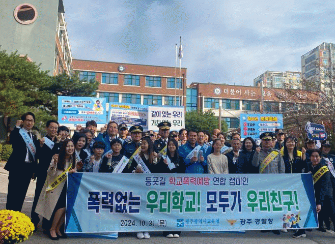 이번 캠페인은 이정선 교육감, 박성주 광주경찰청장, 만호초등학교 교육공동체 구성원 등이 참여한 가운데 ‘폭력 없는 우리 학교! 모두가 우리 친구!’를 주제로 진행됐다.