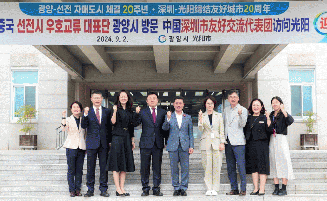 광양시는 자매결연 20주년을 맞아 11월 5일부터 11월 8일까지 정인화 광양시장을 단장으로 한 민.관.경제 대표단 22명이 중국 선전시를 우호 방문할 계획이라고 밝혔다.