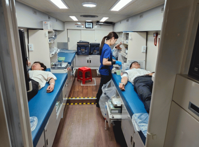 헌혈 주민 편의를 위해 군청과 군 보건소 주차장 헌혈 버스에서 진행했다.