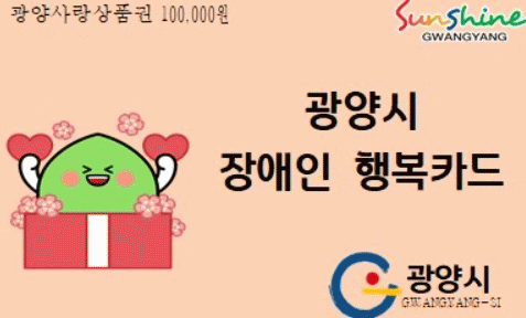 올해 ‘광양시 장애인 행복카드 지원사업’의 지원 대상은 광양시에 주민등록을 둔 장애인연금 수급자로, 연 1회 10만 원을 지역화폐인 광양사랑상품권 카드로 지급한다.