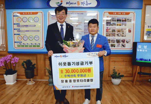 윤동필 회장은 “이번 후원금은 한부모가정의 따뜻하고 안전한 보금자리 마련을 위한 마중물이 되고자 준비했다. 장흥중앙로타리클럽은 도움이 필요한 어려운 이웃을 위해 나눔과 봉사의 정신으로 장흥군과 꾸준히 협력하겠다”고 밝혔다.