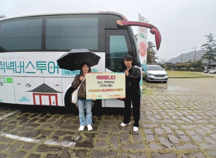 이날 영예의 주인공은 경기도 성남시 분당구에서 화순적벽을 찾아온 이복순 씨로 뜻밖의 행운을 잡은 2만 번째 관람객에게는 화순적벽버스투어 홍보물인 트레블파우치, 트레블세면키트, 보냉백 등의 상품이 증정됐다.
