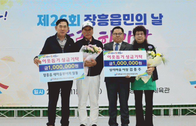 이날 행사에서 사회봉사상을 수상한 상리마을 김종주 이장이 1백만원, 장흥읍새마을부녀회(회장 이애영)에서 1백만원을 지정기탁했다.