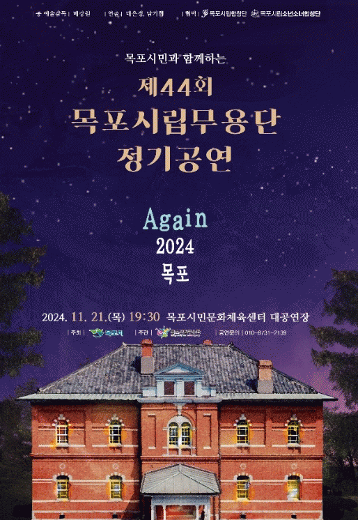 한편, 목포시립무용단의 정기공연 중 시민참여형 프로젝트에 참여를 원할 경우 오는 15일까지 카카오톡 오픈채팅방(목포시립무용단)에 입장해 신청서를 받아 작성한 후 2분 이내의 영상과 함께 제출하면 된다.