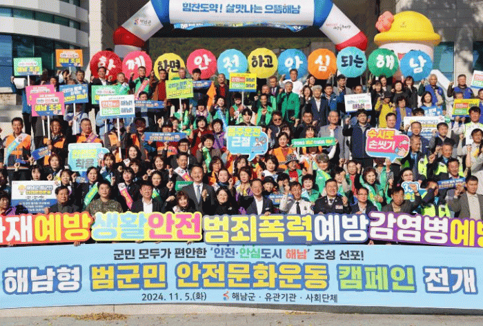 안전문화운동은 교통사고, 화재, 생활안전, 범죄, 자살, 감염병 등 6개 분야의 일상생활 속 기본 안전수칙을 실천하는 운동으로, 해남군 전 군민이 참여하는 지속가능군민 주도 캠페인으로 확산시켜 나갈 예정이다.
