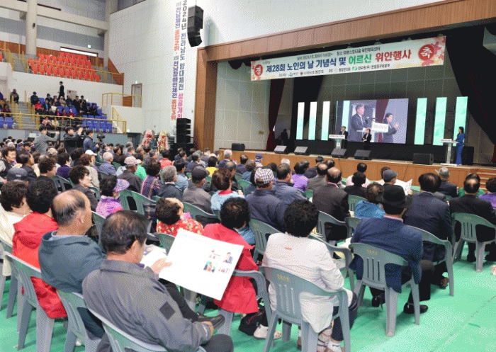 이날 행사에는 어르신을 비롯하여 장세일 군수, 이개호 국회의원, 군의회 의원, 기관·사회단체장 등 주요 내빈 등 2,000여명이 참석했으며 희생과 봉사로 지역사회 발전에 기여한 모범 노인과 노인복지 증진을 위해 헌신한 유공자 등 28명에 대한 표창도 수여됐다.