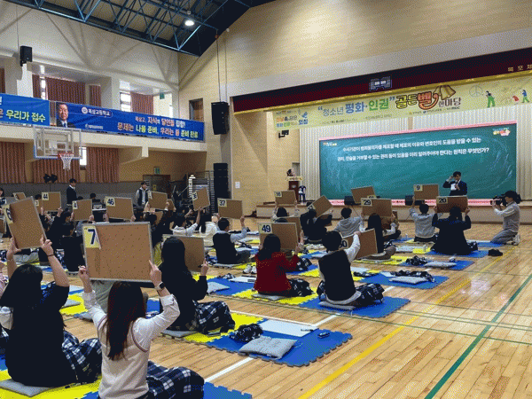 이 행사에는 도내 7개 고등학교에서 선발된 100여 명의 학생들이 참가해, 평화.인권 주제 퀴즈를 풀며 지식을 겨뤘다. 앞서 탈락한 학생들을 위한 패자부활전도 마련돼 골든벨을 울리기 위한 학생들의 열정이 행사장을 가득 메웠다.