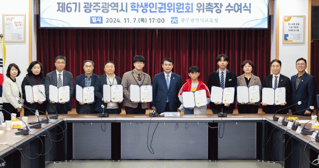 제6기 학생인권위원회는 최원오 광주교대 교수가 위원장을, 김경희 ‘참교육을위한전국학부모회 광주지부장’이 부위원장으로 선출됐다. 또 광주고등학생의회 최장우 광주서석고 학생 역시 부위원장으로 위촉됐다.