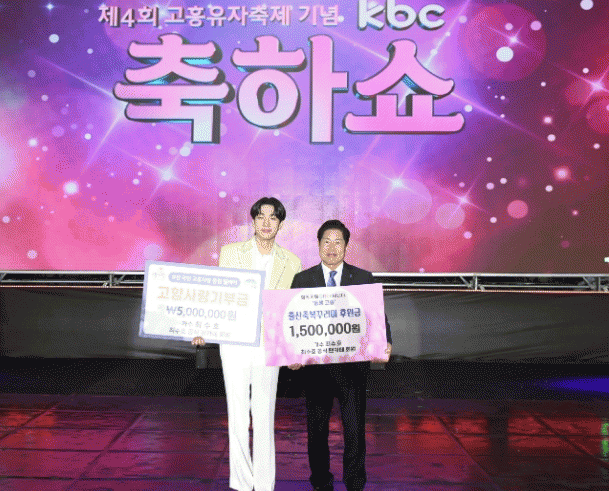 군에 따르면, 가수 최수호는 지난 7일 ‘제4회 고흥유자축제’공연을 위해 방문한 자리에서 팬카페 수방사와 함께 고흥의 변화와 발전을 응원하는 마음으로 고향사랑기부에 동참했다.