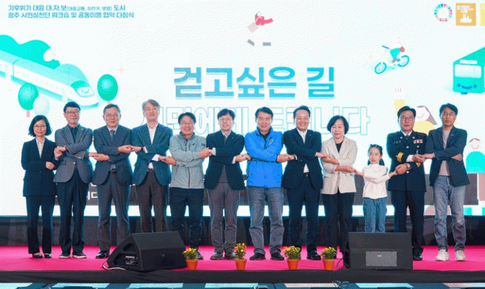 이날 협약식에는 강기정 시장을 비롯해 박필순 광주시의원, 이정선 광주시교육감, 임택 동구청장, 김이강 서구청장, 조익문 광주교통공사 사장, 한가윤 어린이 등 대·자·보 도시 시민실천단 100여명이 참석했다.