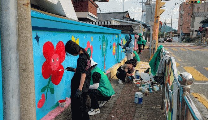 이번 벽화 그리기는 북초등학교 앞 10미터 달하는 담장을 아름다운 벽화로 수놓는 활동과 초등학교 주변 골목길 쓰레기 줍기를 진행했다.