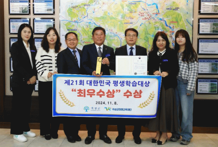 조상래 곡성군수는 “이번 수상은 군과 군민 모두가 한마음 한뜻으로 이루어 낸 뜻깊은 성과다.”며 “평생교육을 지속적으로 지원하면서 아이부터 어른까지 배움을 통한 새로운 변화를 느낄 수 있도록 하겠다.”고 소감을 전했다.