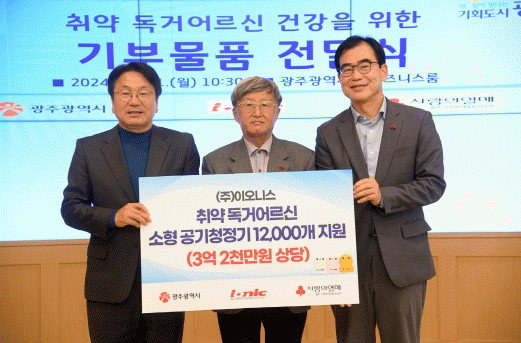 이날 전달된 기부물품은 3억2000만원 상당의 음이온이 발생하는 플러그형 공기청청기 1만2000대로, 노인맞춤돌봄 광역지원기관을 통해 지역 독거 어르신들에게 전달할 예정이다.