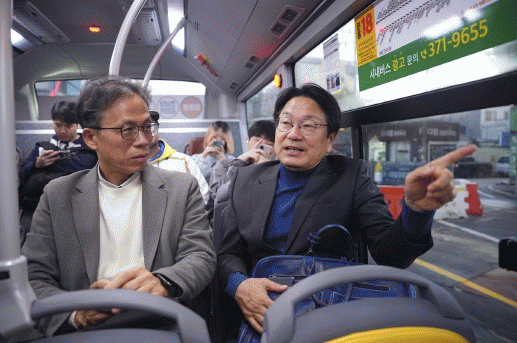 강 시장은 이날 출근길 시내버스에서 만난 시민들에게 대·자·보 도시에 대해 설명하고, 의견을 구했다. 또 대중교통을 이용해 출퇴근하는 시민들의 고충을 귀담았다. 강 시장은 “시내버스는 정시성과 연결성이 강화돼야 하는 만큼 부족한 부분을 세심히 신경쓰겠다”고 약속했다.