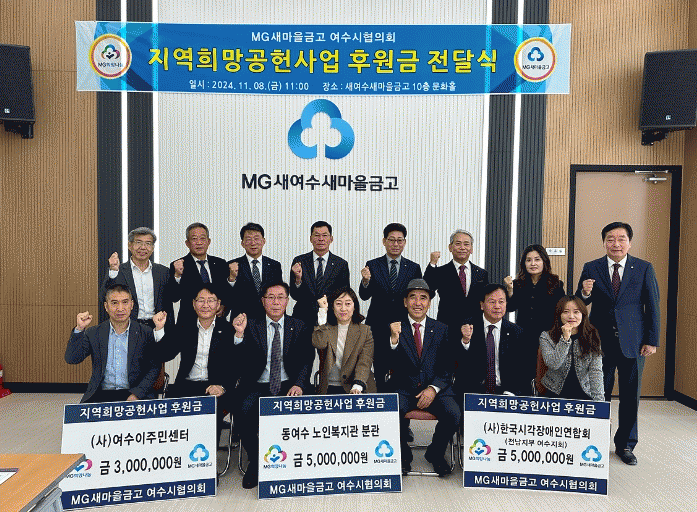한편, 여수시와 MG새마을금고 여수시협의회는 지난 2010년 지역희망공헌사업 협약을 맺고 15년째 후원을 이어오고 있으며, 누적 후원금은 약 2억 원에 달한다.