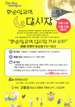 화순입교역 달시장은 매월 셋째 주 토요일 오전 9시부터 오후 6시까지 운영하고 있다. 입교역은 지금은 폐쇄됐지만, 기차가 지나가는 풍경을 즐기면서 장을 보고 쉴 수 있는 공간으로 재탄생했다.