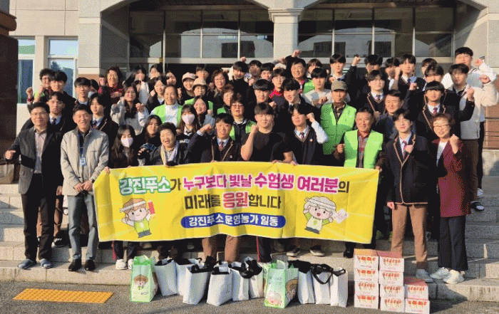강진 푸소 협동조합은 지역 내 수험생들을 응원하기 위해 현수막을 게시, 응원 메시지를 전달했다.