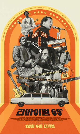 '리바이벌 69’' 메인 포스터는 음악 역사의 한 획을 그은 뮤지션들을 펑키하면서도 키치한 매력으로 담아낸 비주얼로 시선을 집중시킨다. 존 레논, 척 베리, 보 디들리, 제리 리 루이스 등의 이미지와 함께 60년대를 상징하는 오브제들이 콜라주 형태로 배치되어 빈티지한 무드로 독특한 느낌을 선사하는 것.