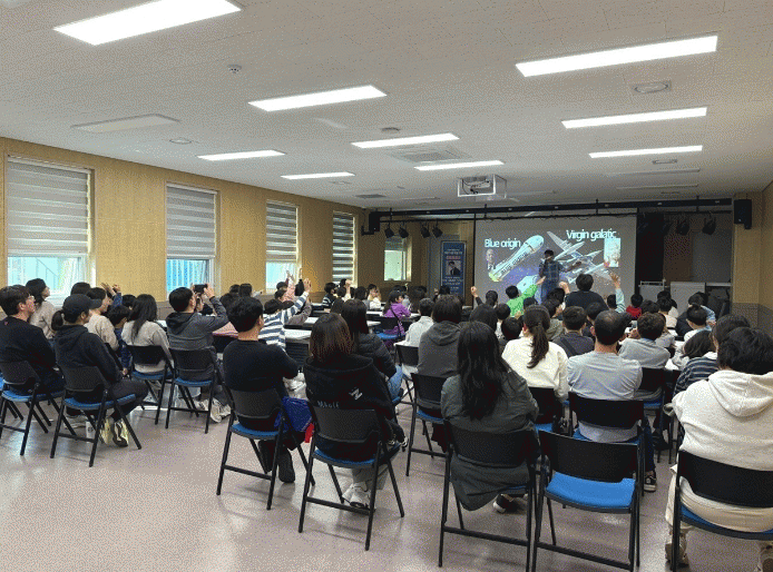 엑소쌤과 함께한 강연은 어린이들이 국내외 우주항공 산업과 우주 기술의 발전을 쉽게 이해할 수 있는 내용으로 진행됐다.