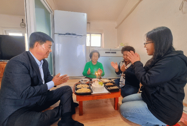 생신을 맞은 어르신은 “혼자 사는 노인을 찾아와 이렇게 생일을 직접 챙겨주고 선물까지 준비해줘서 정말 기쁘고 행복하다”며 감사를 전했다.