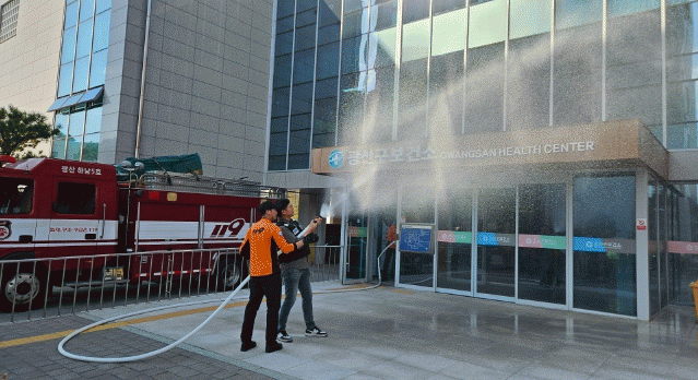 이날 훈련은 보건소 전 직원을 대상으로 광산소방서와 협력해 화재 예방 동영상 시청과 강연, 소화기 사용법 등 다양한 훈련을 진행했다.