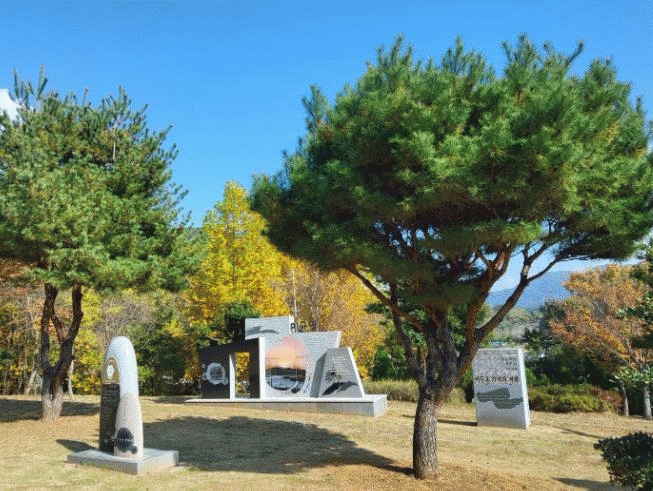 이균영 문학동산에는 이상문학상 수상작 ‘어두운 기억의 저편’을 책으로 형상화한 조형물과 문학비 등이 소박하게 조성돼 있다.