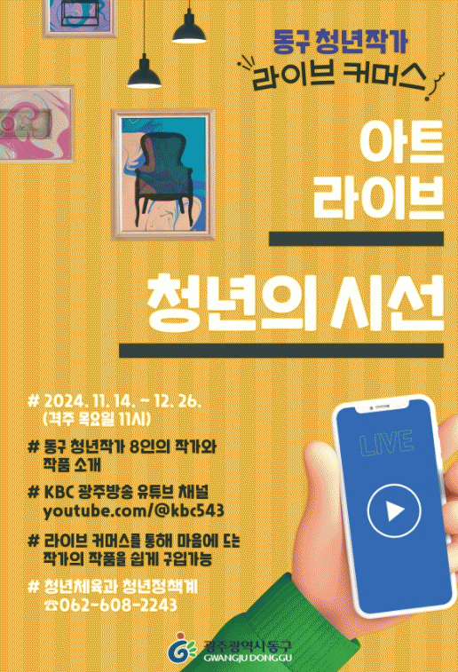 임택 동구청장은 “‘아트 라이브:청년의 시선’은 예술과 상업의 만남을 통해 청년 작가들의 작품이 대중에게 더욱 친숙하게 다가갈 수 있도록 기획한 프로젝트다”면서 “이번 온라인 전시와 라이브 커머스를 계기로 더 많은 청년 작가들이 동구를 기반으로 국내 미술 시장을 선도하는 콘텐츠로 성장해 나가길 기대한다”고 말했다.