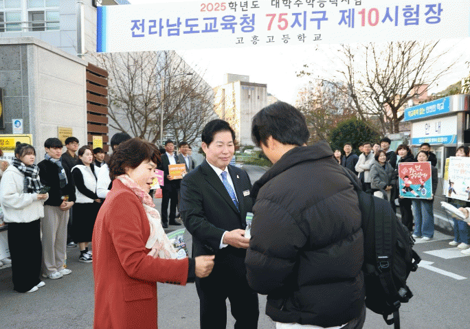 현장에는 류제동 고흥군의회 의장, 권형선 고흥교육장, 공정원 고흥경찰서장 등도 함께 나와 응원에 힘을 보탰고, 수능 대박을 기원하는 후배들의 응원과 준비한 차와 핫팩을 건네며 긴장한 마음을 녹여주는 교육청 관계자와 학부모님들의 따뜻한 손길은 훈훈한 분위기를 더욱 고조시켰다.