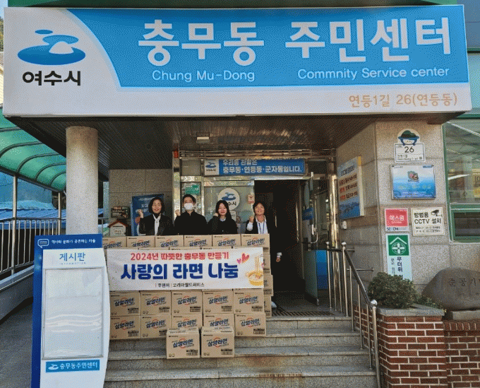 이날 전달된 라면은 충무동 독거노인, 중증 장애인, 복지사각지대 및 경로당 등에 골고루 전달 될 예정이다.