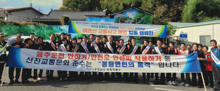캠페인은 지난달 17일 두 기관 간 교통사고 줄이기 업무협약에 따른 것으로, 나주 봉황면 일대에서 전남자치경찰위원회, 한국도로교통안전공단 광주전남본부, 나주경찰서, 마을주민 50여 명이 참여한 가운데 진행됐다.