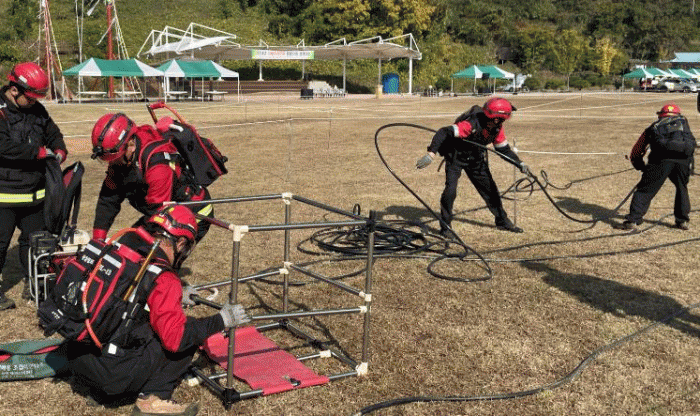 산불 지상진화 분야는 산불전문예방진화대원의 산불진화기계화시스템 장비 숙달 여부 측정으로 진화차 작동, 간이수조 및 중형 펌프 설치, 분배기·호스 설치 및 담수, 진화선 구축 등을 평가했다.